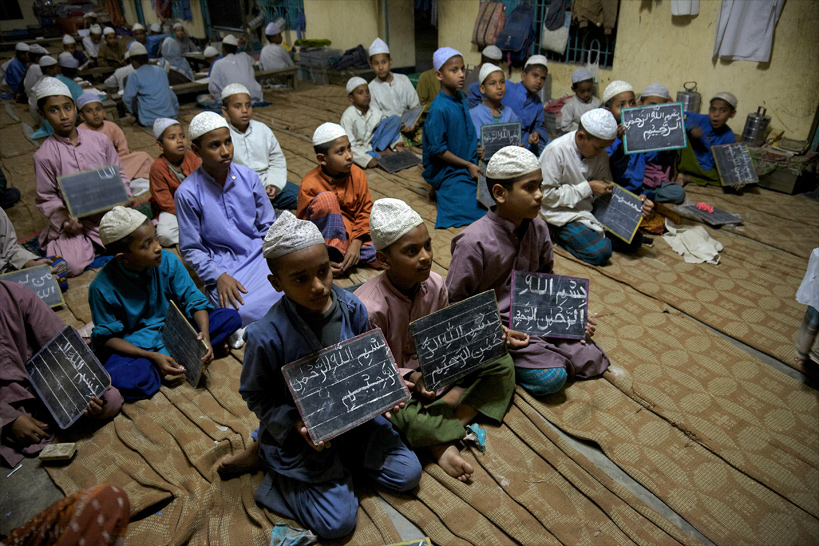 Students inside the class of the Muhammadia Hifizia Islamia Madrasa.