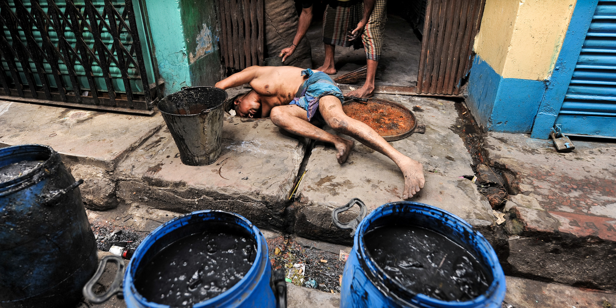 Recroquevillé dans le regard d'un égout, Hassan ramasse les matières qui se sont accumulées dans les recoins pour trouver de l'or. Expérimenté, l'homme ne cherche pas de pépite, mais de la poussière qui se serait échappée des joailleries. Au Bangladesh, ces ateliers ne disposent effectivement pas de systèmes filtrants les eaux usées.