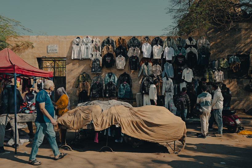 Al-Tonsy, Le Caire, Égypte. Le marché de Gomar se déroule tous les vendredis dans le cimetière d'al-Tonsy. Les exposants déposent leurs biens sur les murs ou à même le sol du cimetière.