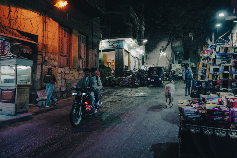 Al-Hattaba, Le Caire, Égypte. Dans une des artères du quartier, un homme et son mouton font l'animation. De toute évidence bons amis, ils se courent après et font rire autant qu'ils surprennent l'ensemble des personnes qu'ils croisent.