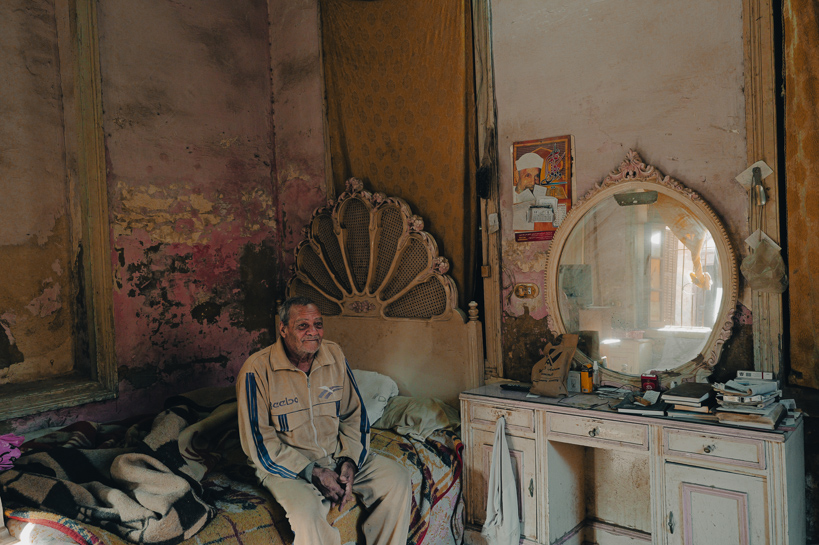 Qaytbay, Le Caire, Égypte. Mahmout a grandi dans cette maison du cimetière. Autrefois chanteur, il vit seul depuis plusieurs années, sa femme étant partie vivre avec un autre homme. La maison reste le lieu de ses souvenirs au cœur du quartier funéraire.