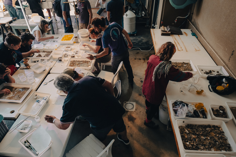 Une fois les collectes tamisées, une course contre la montre s'enclenche pour identifier les espèces et préserver la qualité de l'ADN. Première étape : le tri des grosses fractions. Les taxonomistes à l'œil aiguisé participent aussi à cette étape et isolent rapidement les espèces qui leur paraissent intéressantes ou fragiles.