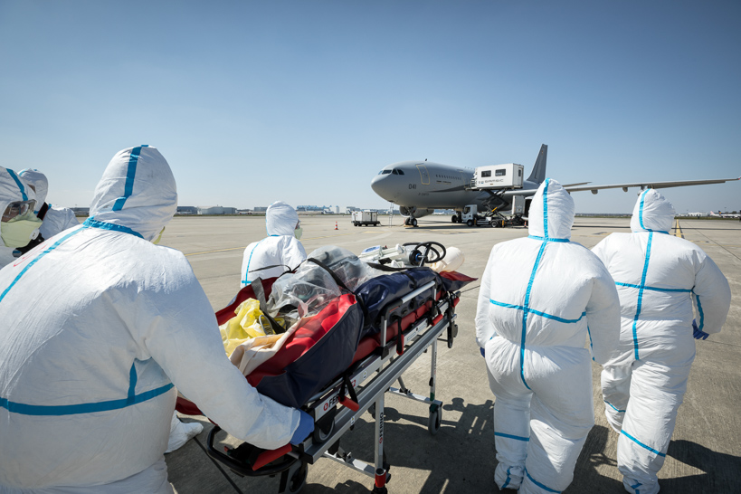 Les visites étant interdites, les infirmières répondent régulièrement aux familles des victimes pour leur donner des nouvelles. Les constantes vitales des patients infectés sont transmises en direct sur des écrans en secteur propre devant chaque box. Les soignants peuvent surveiller ces données sans avoir à rentrer en permanence dans les zones contaminées.
