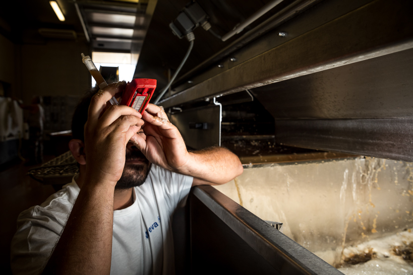 Dès la première presse, le jus sous le pressoir est contrôlé à l'aide d'un réfractomètre. Cet instrument de mesure permet de contrôler le taux de sucre contenu dans le jus et donc son potentiel d'alcool. L'indice est beaucoup plus représentatif que les quelques baies récoltées avant vendanges. Elle permet au vinificateur de décider de la marche à suivre pour la suite. L'élaboration peut commencer.