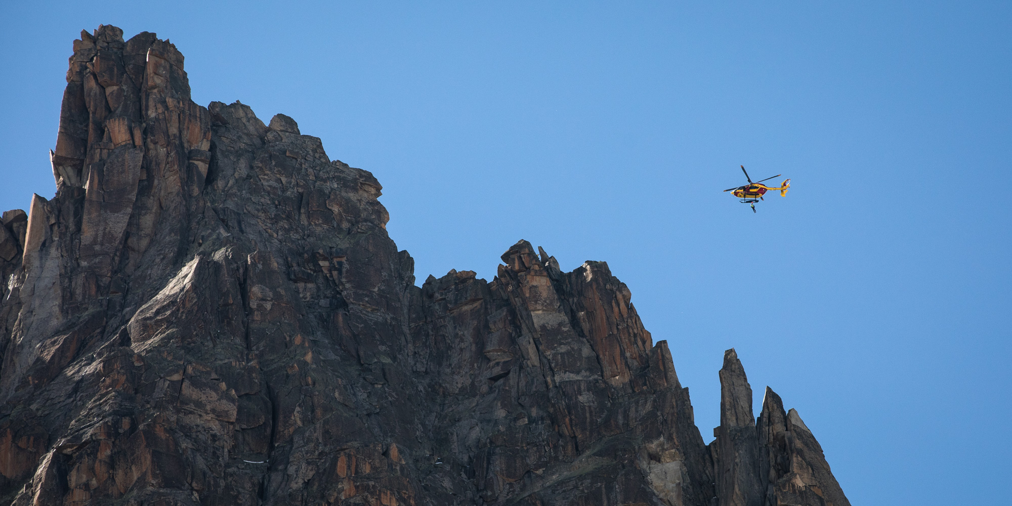 En été, une semaine sur deux, l'hélicoptère EC145 jaune et rouge de la Sécurité civile, indicatif « Dragon 74 », est déployé sur Chamonix pour veiller sur le massif du Mont-Blanc.