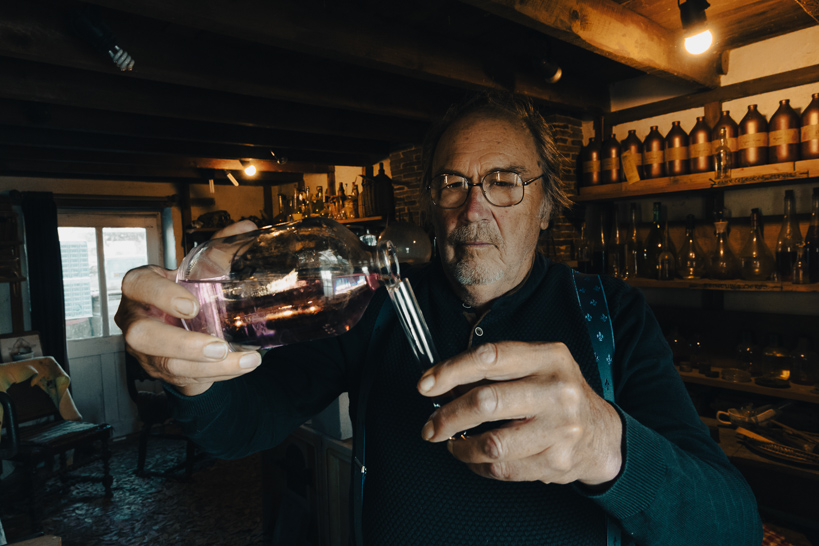 ![]() Frédéric Christian Leclercq pratique l'alchimie végétale, ou spagyrie. Il dédie son temps à extraire les principes fondamentaux des plantes – le soufre, le mercure et le sel – avant de les rassembler sous forme d'élixirs. Ici, il ne s'agit pas des éléments chimiques du tableau périodique, mais de l'âme, de l'esprit et du corps de tout ce qui compose l'univers, tel que Paracelse l'a défini au XVIe siècle. Pour lui, la guérison de l'homme ou de la nature passait par l'équilibre de ces trois aspects. Une protoscience que Frédéric a reprise à son compte pour soulever d'autres questions existentielles. Aux curieux, l'alchimiste propose de revenir aux origines de la pharmacopée, ou l'art de préparer les médicaments. Avec lui, la purification d'une substance, loin d'être un simple artisanat, devient un moyen de méditation et de plaisir concret. | ||||||