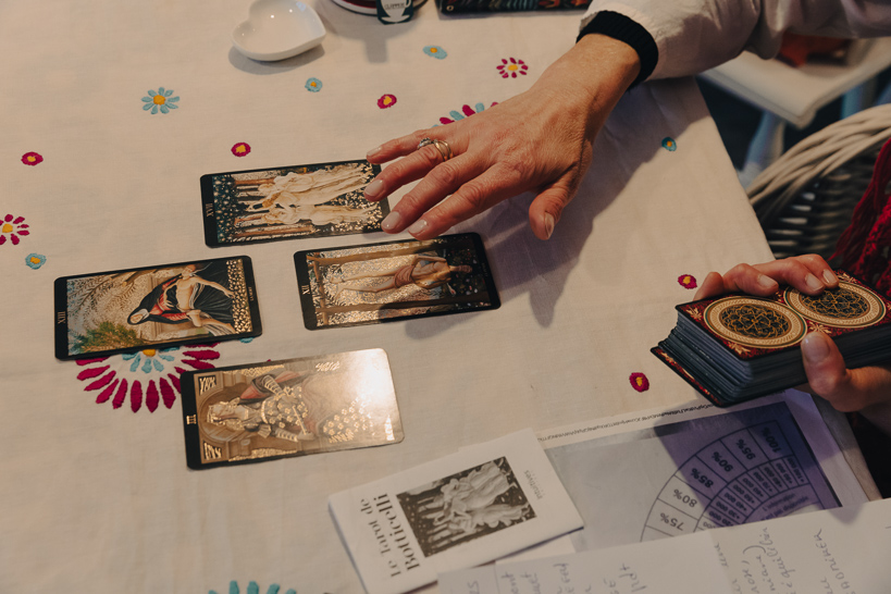 ![]() Émilie Marescaux pratique la sorcellerie. En 2023, elle a co-fondé Le Jardin Astral avec Marie Espinasse, numérologue, pour exercer son art et accueillir du public. Lové dans l'agglomération lilloise, le lieu est constitué d'une boutique, d'un salon de thé et d'un cabinet ésotérique. Plus qu'un concept store, c'est là qu'elles proposent des séances d'astrologie, de numérologie, de voyance et de guidance. Ancrées dans un héritage ancien – celui de femmes qui observaient les cycles et accompagnaient les communautés – Émilie et Marie offrent moins de certitudes que la possibilité de se recentrer. À l'approche d'Halloween, elles préfèrent quant à elles célébrer Samain, un sabbat païen considéré comme le Nouvel an celtique – l'occasion d'accueillir « des messages venus de l'au-delà ». | ||||||