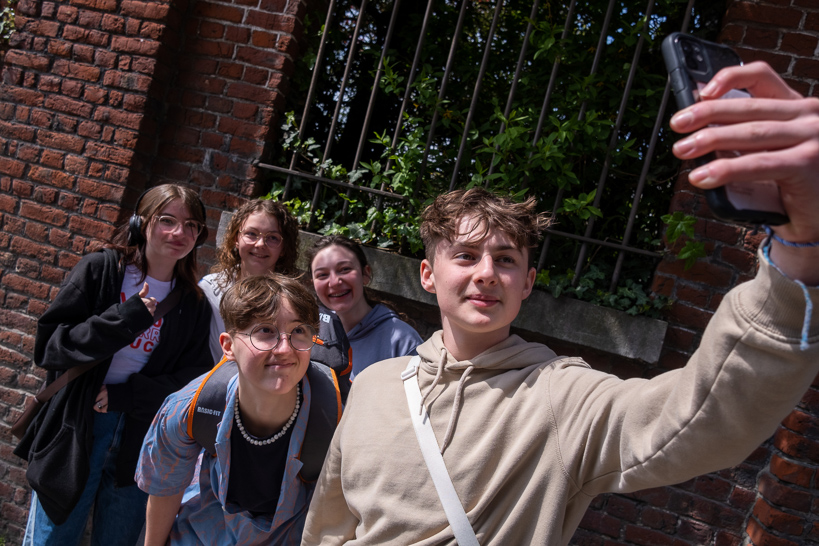 Mathéo, Augustin, Louiselle et Célia, après avoir récupéré le matériel nécessaire pour la mise en place des lances à incendie, écoutent les instructions du chef d'agrès.