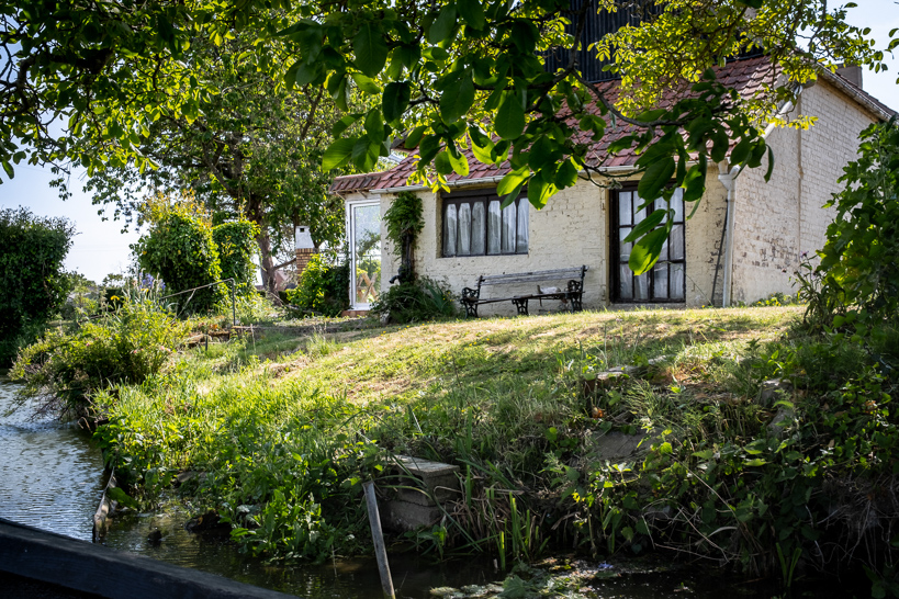 Les maisons sont traditionnellement installées à proximité de l'eau. Elles permettaient aux maraîchers d'accéder à leurs cultures en bateau. Aujourd'hui comme hier, l'entretien des berges incombe aux riverains. Ci-contre, une tôle ondulée retient la terre, tandis que deux parpaings font office de débarcadère.