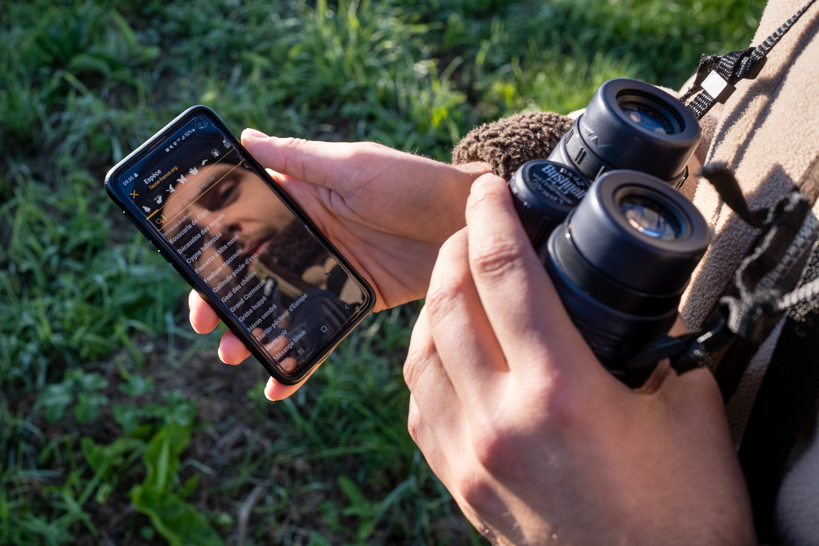 Kévin, 22 ans, scrute le marais aux jumelles. Il utilise une application pour répertorier les oiseaux qu'il observe. Bénévole à la Ligue pour la protection des oiseaux (LPO), il aime particulièrement suivre le Grand cormoran, la Mésange boréale et le Troglodyte mignon. « Cette réserve vous ouvre tous ses secrets si vous êtes patient », prévient le passionné d'ornithologie, habitant lui-même Watten, à une dizaine de kilomètres de là.