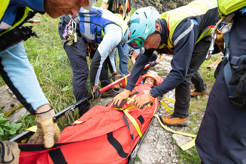 « Si l'accès aux victimes n'est pas possible par la route ou par hélicoptère, on met en place une caravane terrestre », explique Antoine Rouget, médecin du secours en montagne des Hautes-Pyrénées. Mais parfois, en basse montagne, un simple accident de loisir peut être difficilement accessible. Une chute de chemin de randonnée pédestre, à distance de toute forme de voie carrossable, peut nécessiter un accès en corde de rappel par les équipes spécialisées.