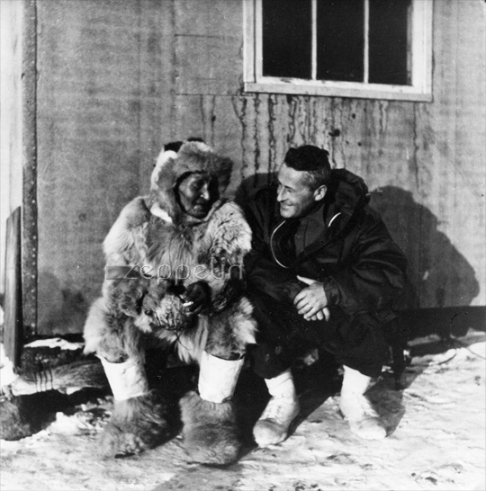 Paul-Émile Victor rencontre Oo Tah, l'un des quatre Inuits qui atteignit le pôle Nord avec l'expédition de Robert Peary, le 6 avril 1909 (juin 1953).