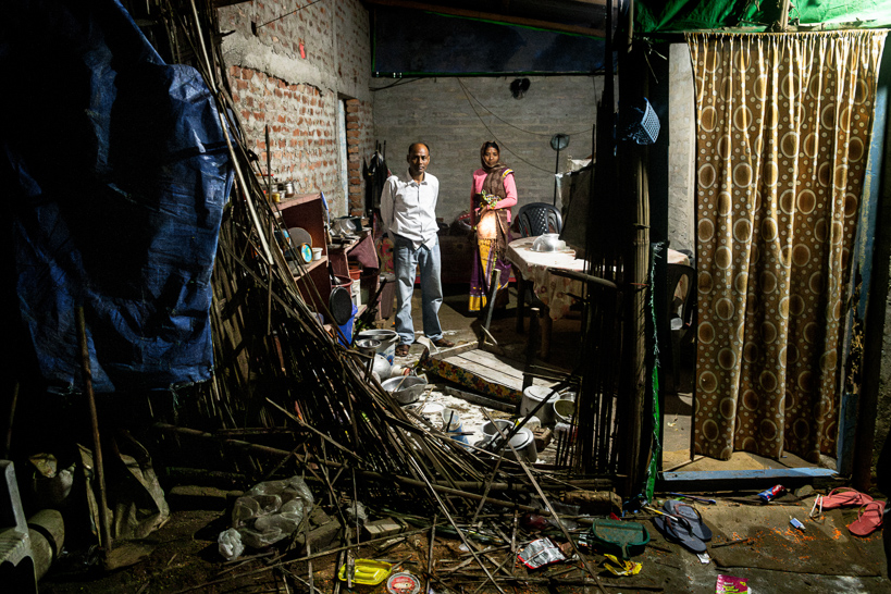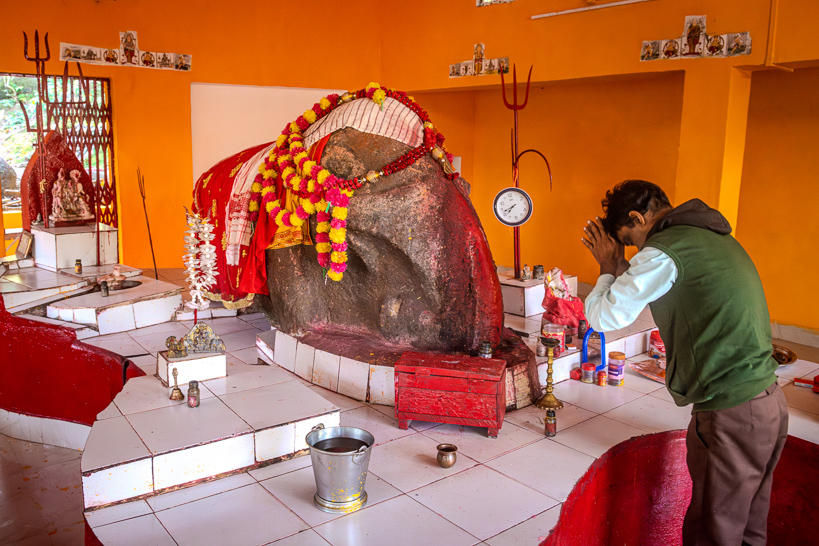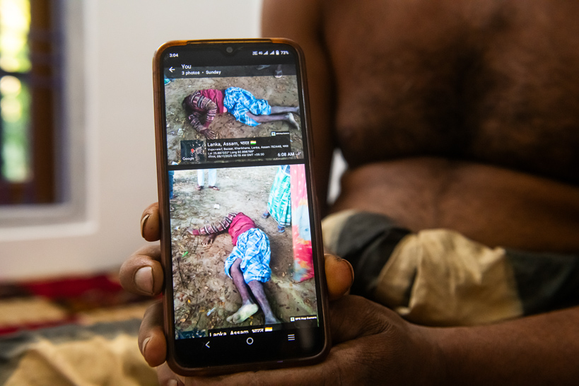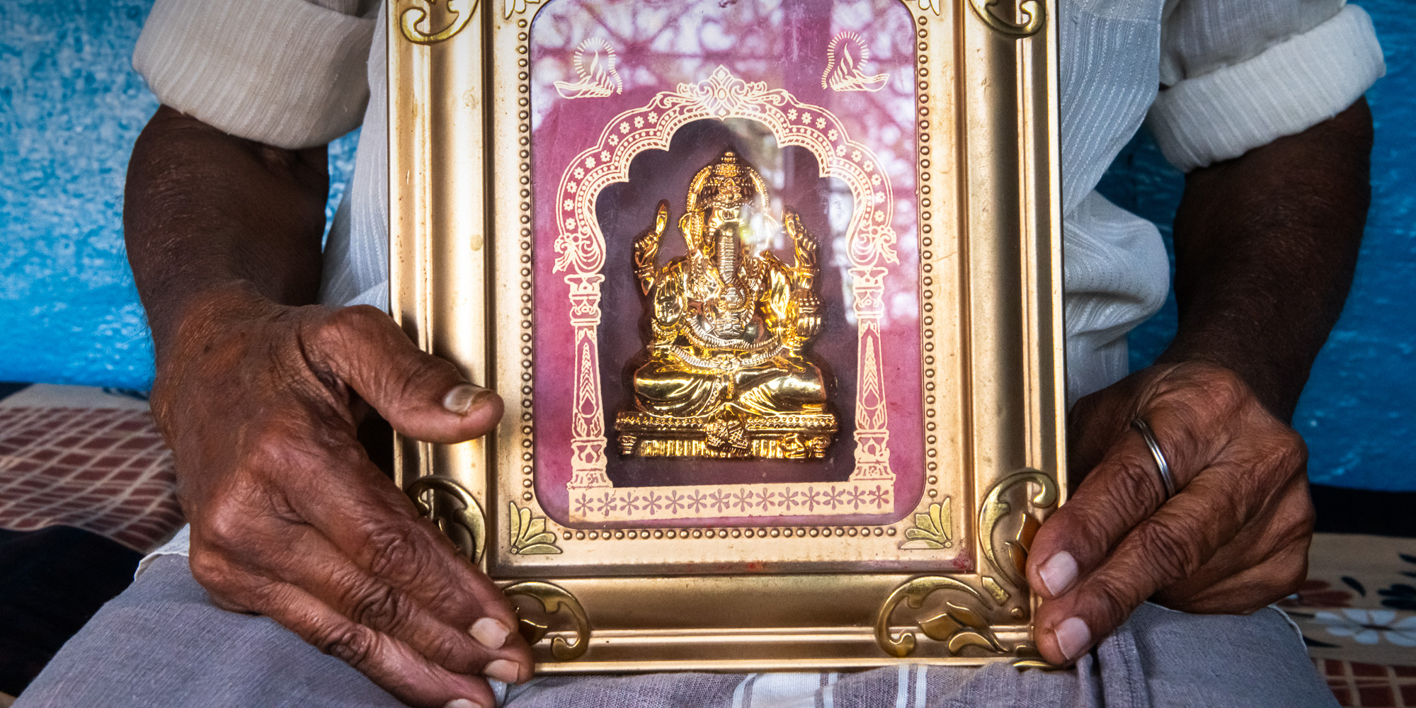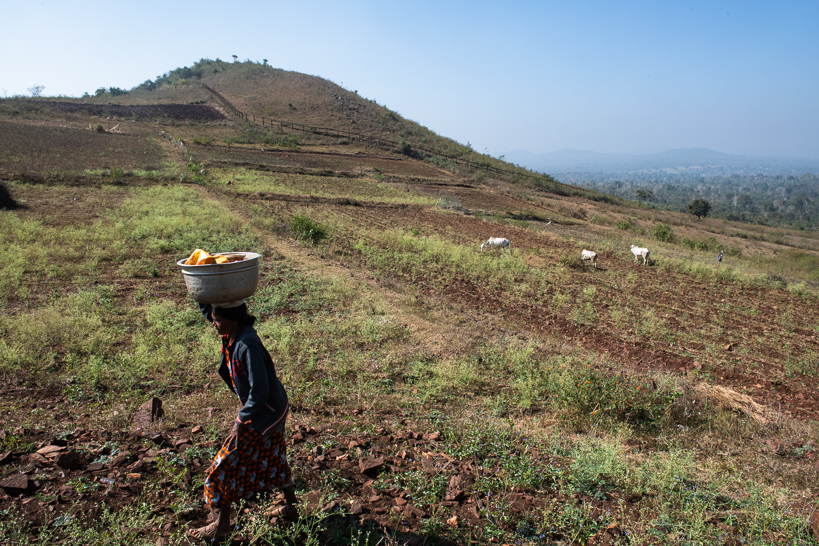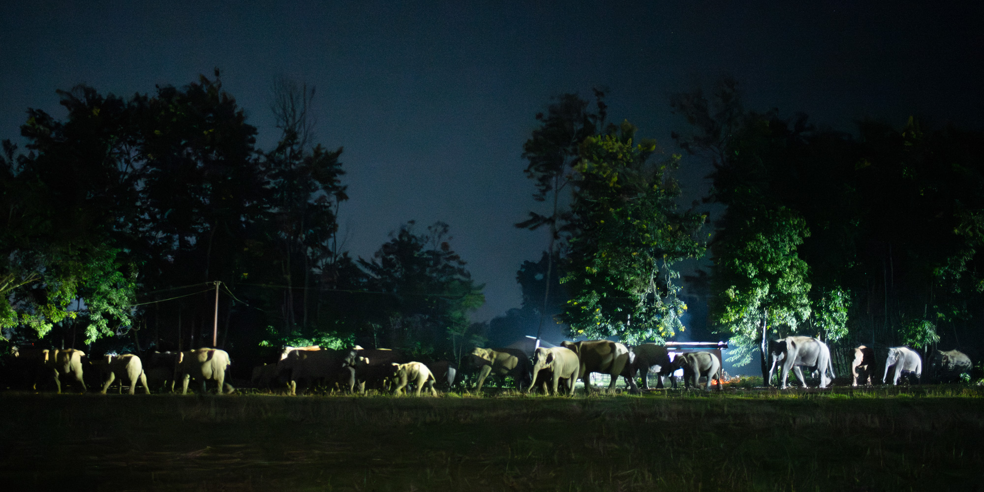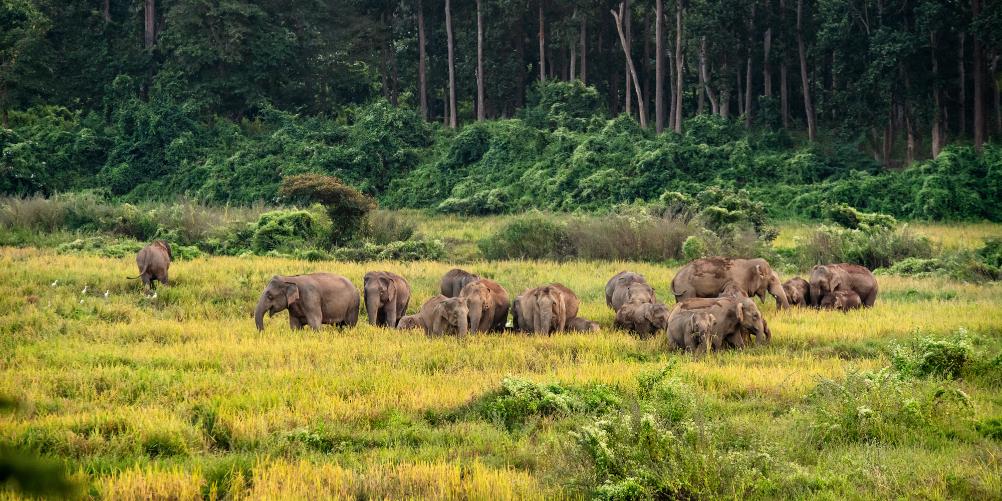 Shibukuttan, garde forestier, inspecte un jeune casse-marron (Senna spectabilis). Cette plante invasive a été introduite dans les années 1980 par le Gouvernement indien pour ombrager les routes et servir d'ornement. Elle s'est rapidement répandue dans les forêts méridionales du pays. Elle forme de denses bosquets, étouffe les espèces locales et modifie la chimie des sols. Ces feuilles, qui ne sont pas comestibles, privent les herbivores de nourriture.