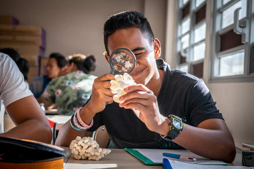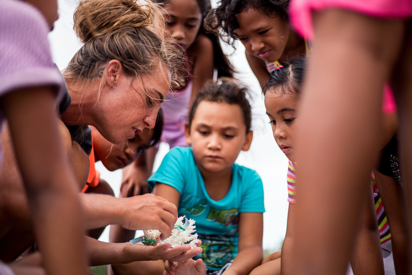 Rencontre avec les enfants de Bora-Bora pour leur expliquer la démarche d'Under The Pole et leur donner des clefs pour comprendre les coraux et la plongée sous-marine.