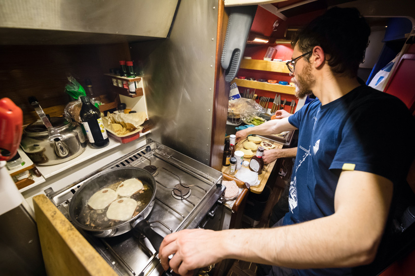 Burger night cooked by the two cameramen onboard Victor Rault and Kevin Peyrusse.