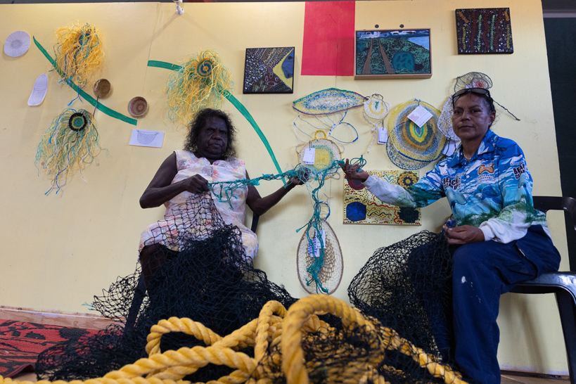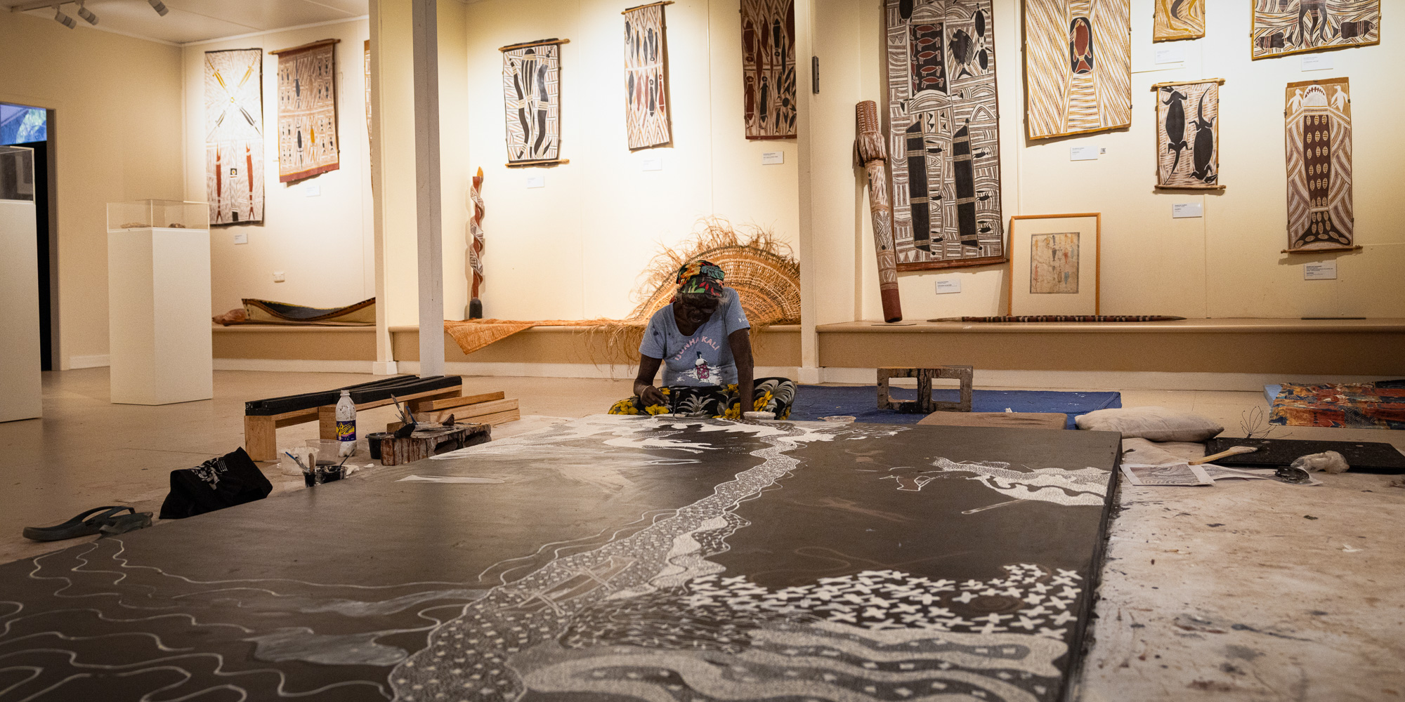 Sur une paroi de la grotte Wurruwarrkbadenumanja, à Groote Eylandt, ont été peints à l'ocre rouge des dugongs, des dauphins et des goannas qui incarnent autant de totems et d'ancêtres. Pour les Anindilyakwa, ces figures expriment la loi ancestrale vivante. Cet art rupestre date d'au moins 5000 ans, point d'ancrage d'une mémoire toujours active dans la culture aborigène contemporaine.