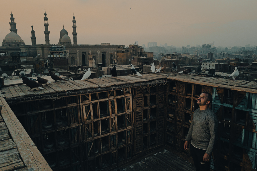Al-Hattaba, Le Caire, Égypte. Shilbamy a installé un pigeonnier sur le toit de son immeuble, une pratique traditionnelle dans la capitale. Les pigeons disposent de compartiments pour se reposer et se reproduire, tout en pouvant voler librement autour du quartier. Le guano récolté est vendu comme fertilisant aux maraîchers. Certains individus sont élevés pour le commerce de volailles, d'autres pour les loisirs, comme les concours de vol ou l'élevage esthétique. Ainsi, le pigeonnier est-il un élément central de la vie cairote.