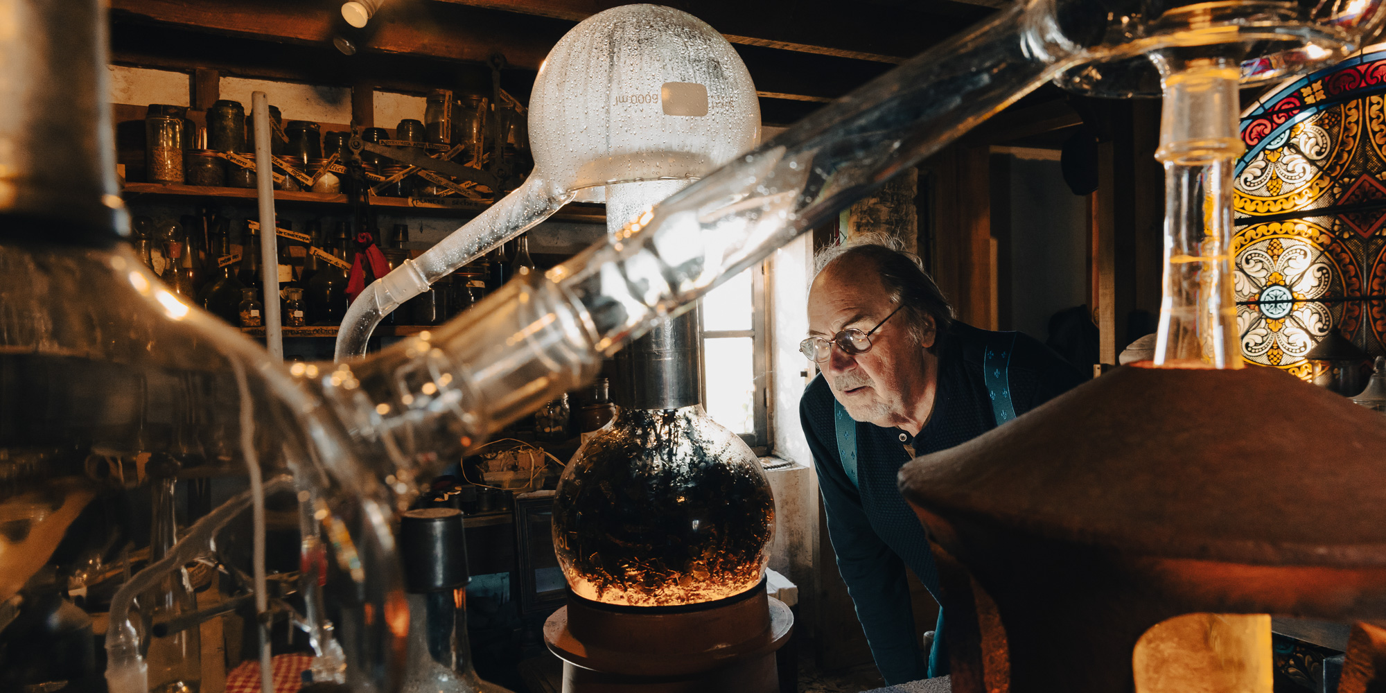 ![]() Frédéric Christian Leclercq pratique l'alchimie végétale, ou spagyrie. Il dédie son temps à extraire les principes fondamentaux des plantes – le soufre, le mercure et le sel – avant de les rassembler sous forme d'élixirs. Ici, il ne s'agit pas des éléments chimiques du tableau périodique, mais de l'âme, de l'esprit et du corps de tout ce qui compose l'univers, tel que Paracelse l'a défini au XVIe siècle. Pour lui, la guérison de l'homme ou de la nature passait par l'équilibre de ces trois aspects. Une protoscience que Frédéric a reprise à son compte pour soulever d'autres questions existentielles. Aux curieux, l'alchimiste propose de revenir aux origines de la pharmacopée, ou l'art de préparer les médicaments. Avec lui, la purification d'une substance, loin d'être un simple artisanat, devient un moyen de méditation et de plaisir concret. | ||||||