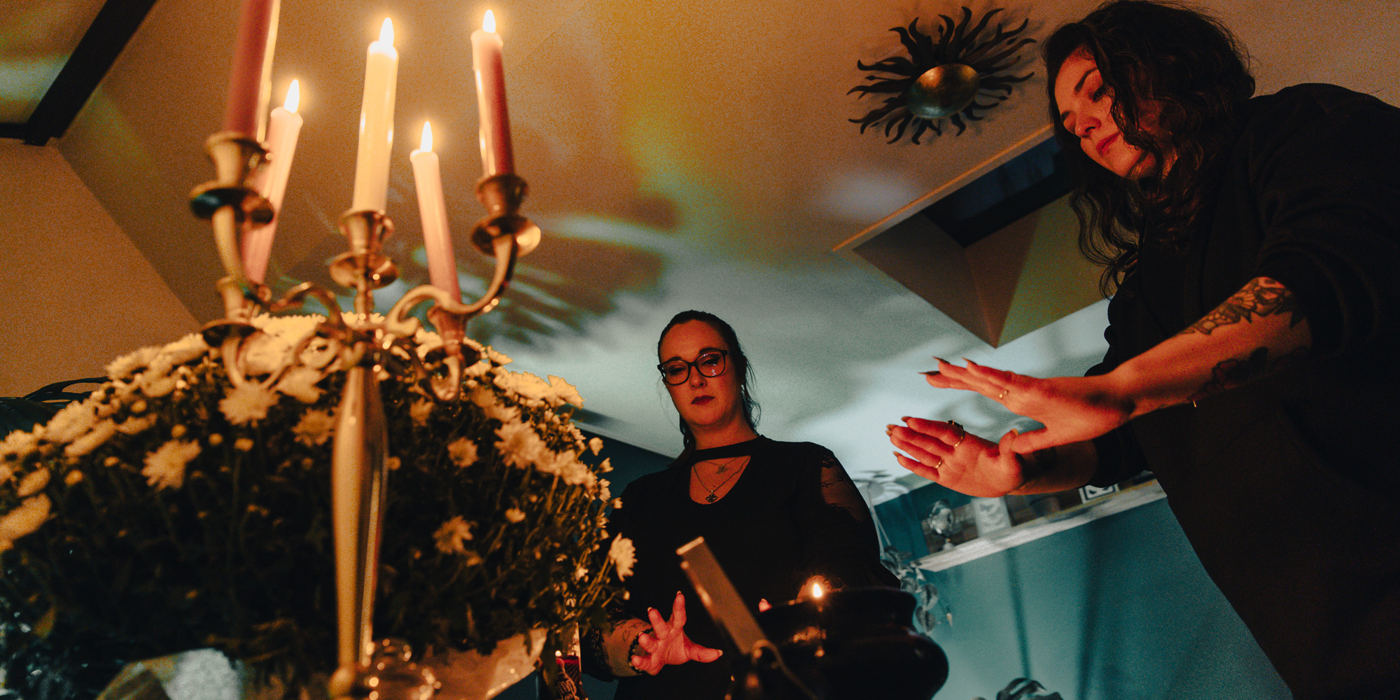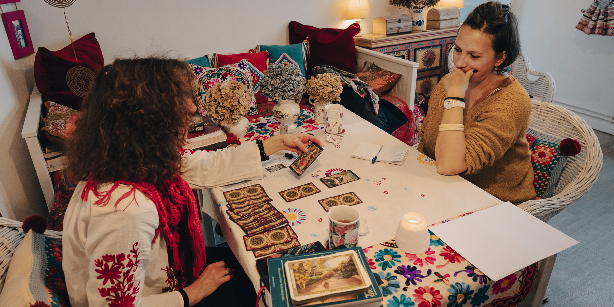 ![]() Émilie Marescaux pratique la sorcellerie. En 2023, elle a co-fondé Le Jardin Astral avec Marie Espinasse, numérologue, pour exercer son art et accueillir du public. Lové dans l'agglomération lilloise, le lieu est constitué d'une boutique, d'un salon de thé et d'un cabinet ésotérique. Plus qu'un concept store, c'est là qu'elles proposent des séances d'astrologie, de numérologie, de voyance et de guidance. Ancrées dans un héritage ancien – celui de femmes qui observaient les cycles et accompagnaient les communautés – Émilie et Marie offrent moins de certitudes que la possibilité de se recentrer. À l'approche d'Halloween, elles préfèrent quant à elles célébrer Samain, un sabbat païen considéré comme le Nouvel an celtique – l'occasion d'accueillir « des messages venus de l'au-delà ». | ||||||