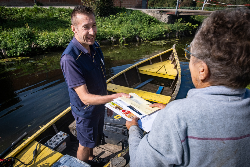 Nicolas Hudelle est facteur. Il est le seul en France métropolitaine à travailler en barque. Un défi logistique devenu une routine pour celui qui relie Salperwick, Saint-Omer, Tilques et Serques. Chaque jour, il parcourt 18 kilomètres sur les watergangs, soit une tournée d'environ 2h20.