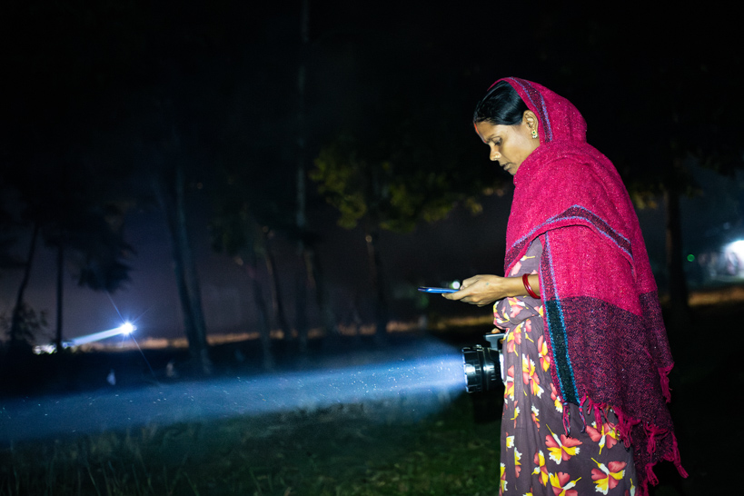 Jaribasa, Assam, Inde. Rajender Chanhan inspecte la clôture électrique endommagée par le passage d'éléphants venus se nourrir dans les rizières. Sans cette protection, sa maison en bordure de village serait particulièrement exposée aux « raids » des pachydermes. Pour localiser le troupeau et les individus isolés, Rajender reçoit régulièrement des informations sur son portable. Les villageois utilisent les réseaux sociaux et les services de messagerie pour s'organiser et anticiper l'arrivée d'éléphants.