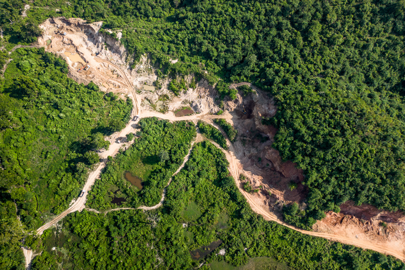 Au sud-est du district de Karbi Anglong, Assam, Inde. Une carrière a profondément entaillé le couvert forestier. La multiplication de ce type d'exploitations, parfois illégales, ainsi que leurs voies d'accès, accentuent la pression sur le milieu naturel. Les explosifs utilisés pour extraire la roche perturbent la communication des éléphants et sont une source de stress importante pour la faune.