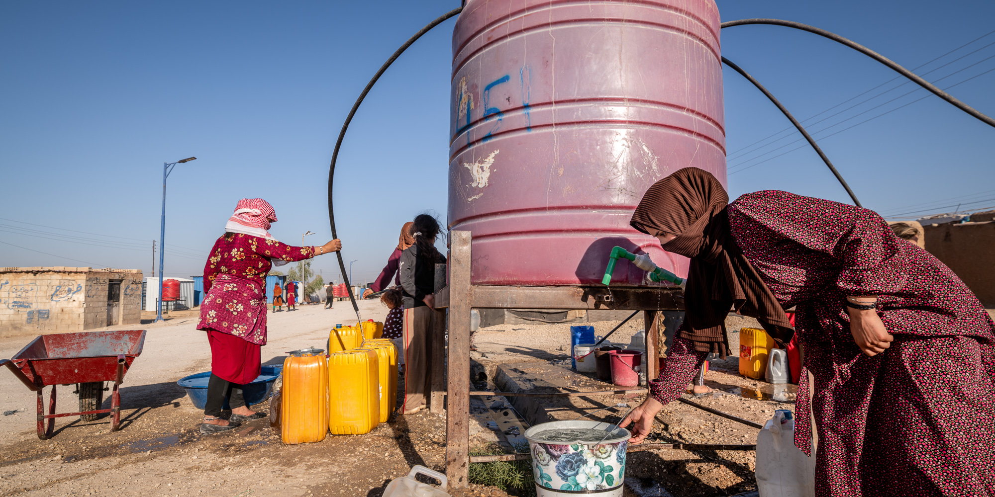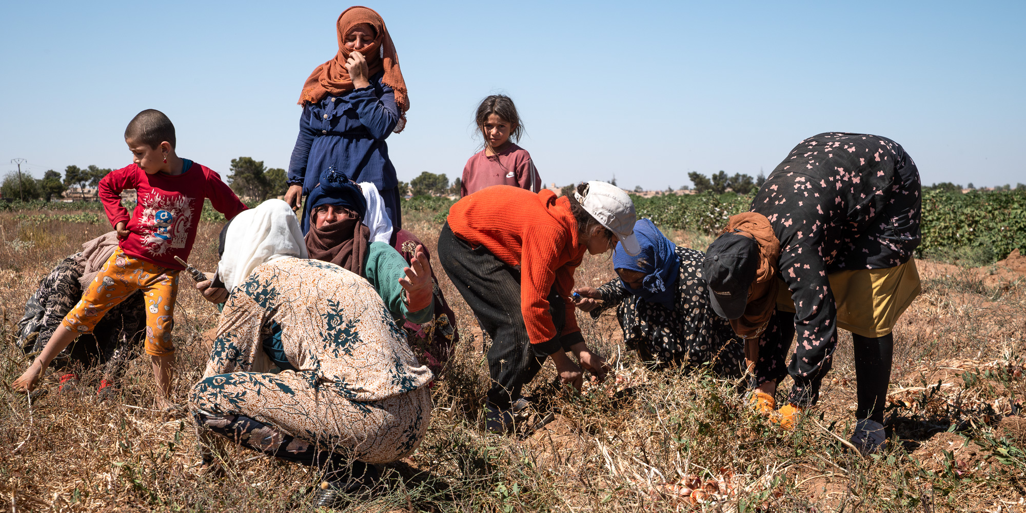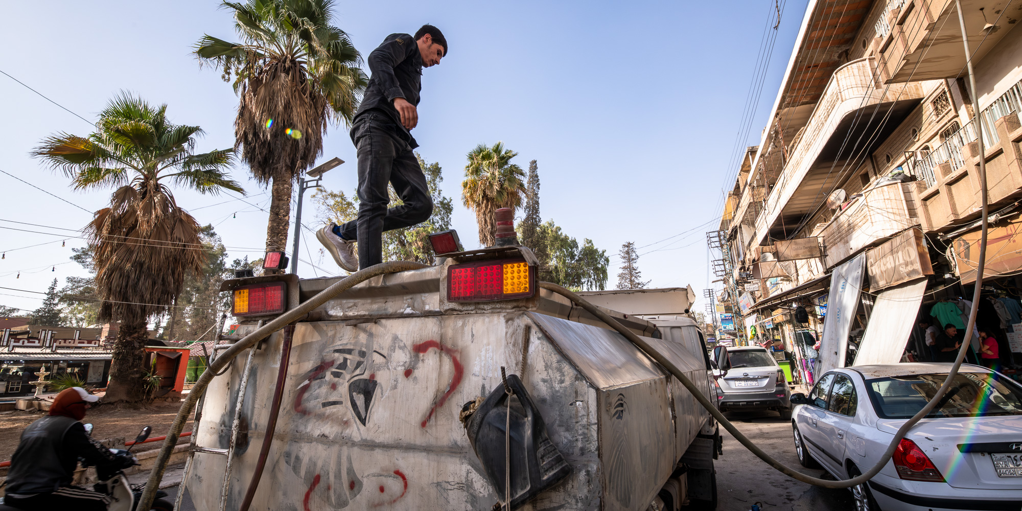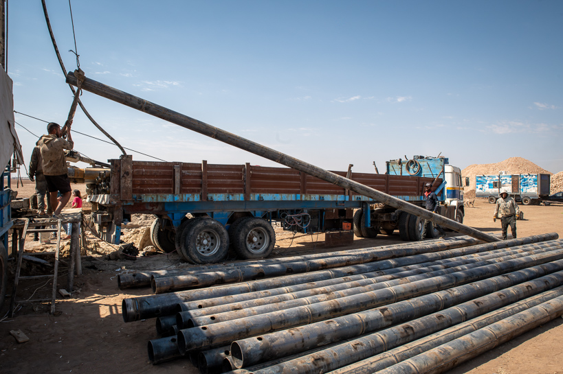 Haitam supervise la récole sur des terres qu'il exploite en fermage. « Ici avant, on cultivait du coton et du blé en abondance grâce au système d'irrigation fourni par Hassaké ou Serê Kaniyê, mais tous deux se sont arrêtés », se rappelle l'agriculteur. Maintenant que la Khabour est asséchée, il doit changer progressivement pour du cumin, de l'orge et des légumes (oignons, carottes). « Ces cultures consomment moins d'eau que le coton et le blé, mais aujourd'hui on dépend des puits, ce qui nécessite beaucoup d'énergie pour le pompage », explique-t-il. Haitham utilise des panneaux solaires pour pomper dans un puits d'eau non potable et irriguer ses cultures, mais les autres puits restent inutilisés par manque de carburant. Pour fournir de l'eau à sa famille, il commande un camion-citerne d'eau chaque semaine en provenance de la région d'Hassaké.